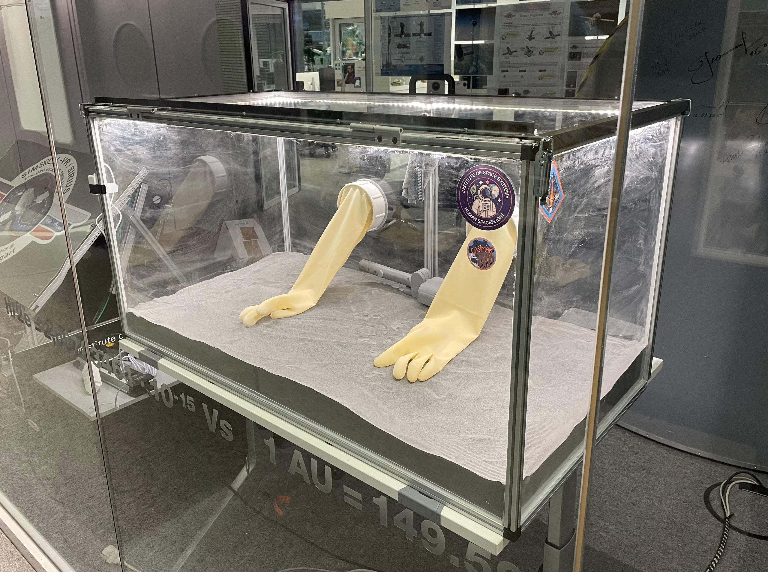 Mit freundlicher Unterstützung und Finanzierung der Professur für Astronautik und Exploration des Instituts für Raumfahrtsysteme sowie der LUNA Analog Facility wurde im IRS eine Handschuhbox eingerichtet, die 70 Liter EAC-1A-Regolithsimulant aus der LUNA-Halle enthält. In dieser Box können jetzt Experimente für CASIMAR und andere Projekte auf eine sichere und saubere Art und Weise durchgeführt werden, ohne extra den Weg nach Köln antreten zu müssen.